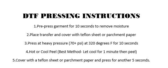 End result once pressed is similar to screen print transfers. All you need is a heat press for 10 seconds at 320 degrees farenheit.