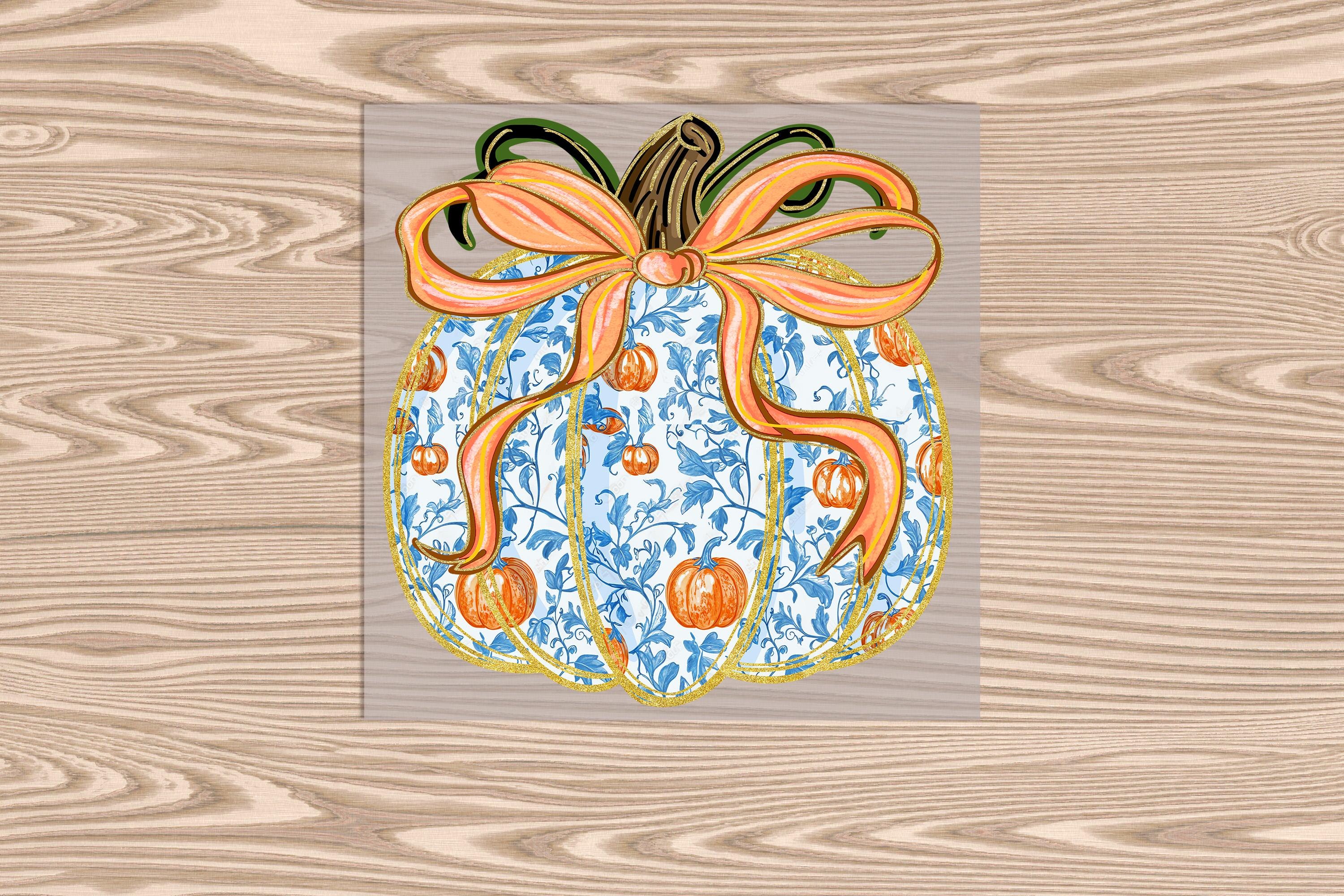 Orange Chinoiserie Pumpkin Coquette DTF Transfer: Halloween Heat Transfer Print