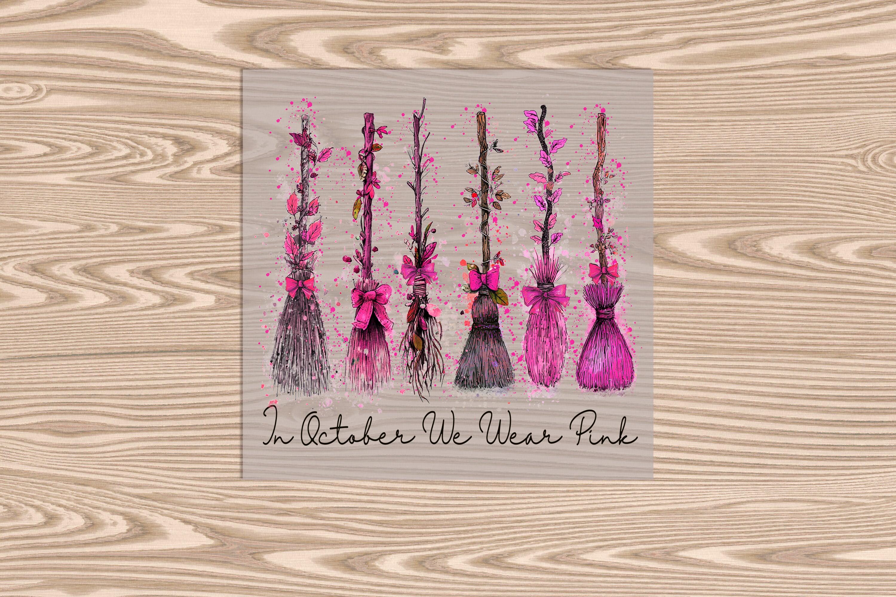 In October We Wear Pink Witches Brooms DTF Transfer Print