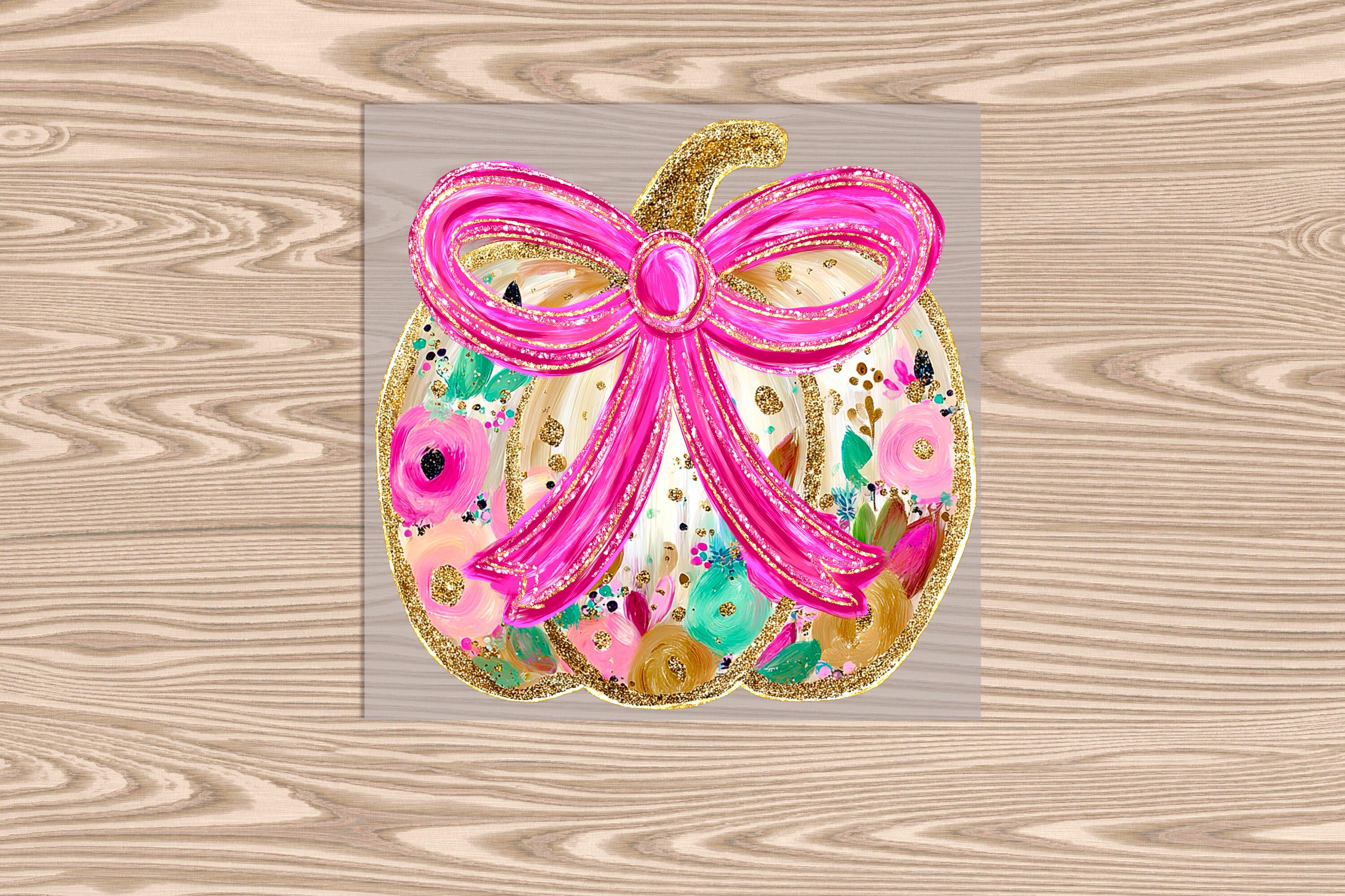 Coquette Pink Floral Pumpkin DTF Transfer: Halloween Heat Press Print
