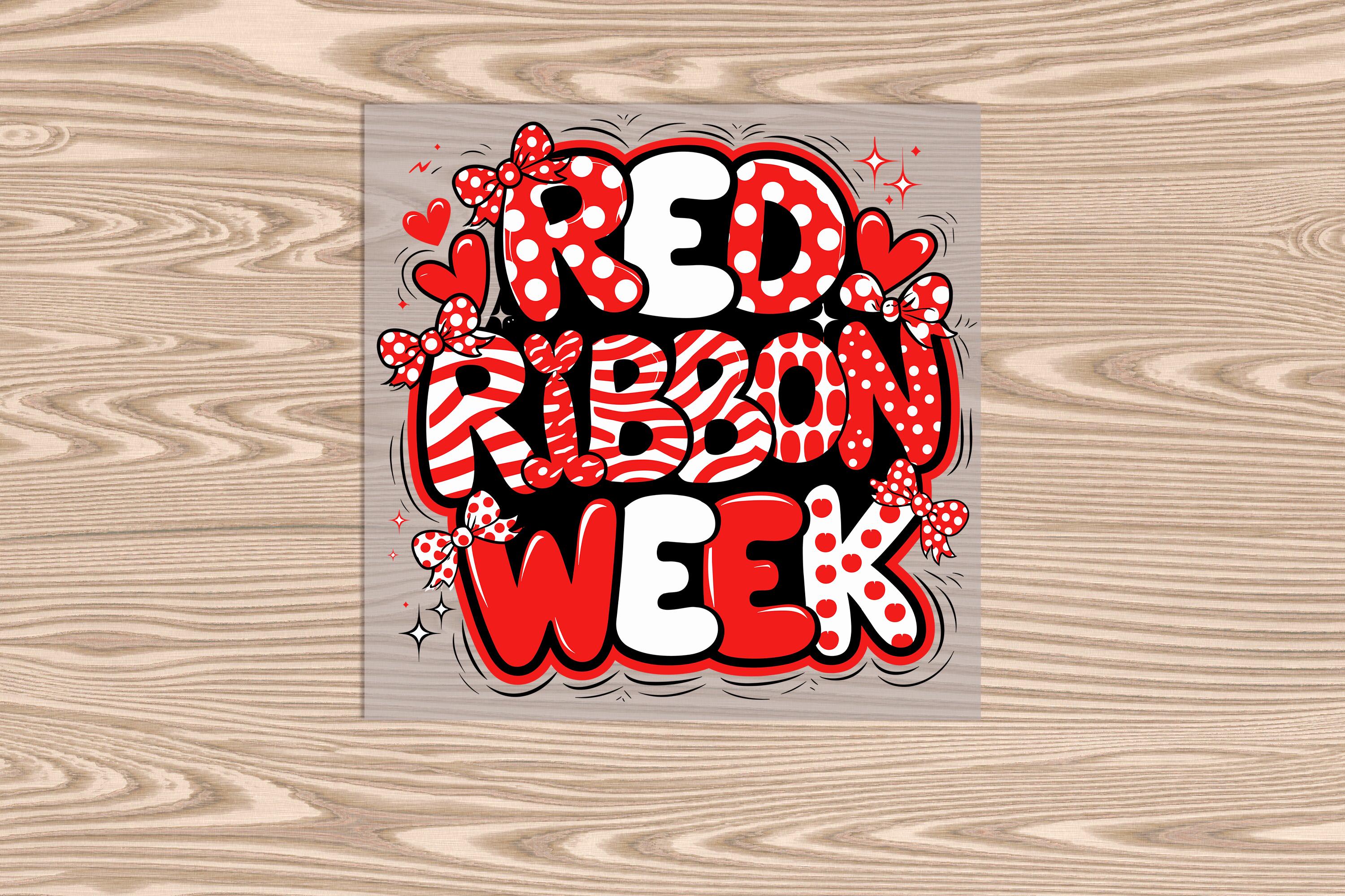 Red Ribbon Week Bubble Letters - Ready to Press - DTF Transfer Print