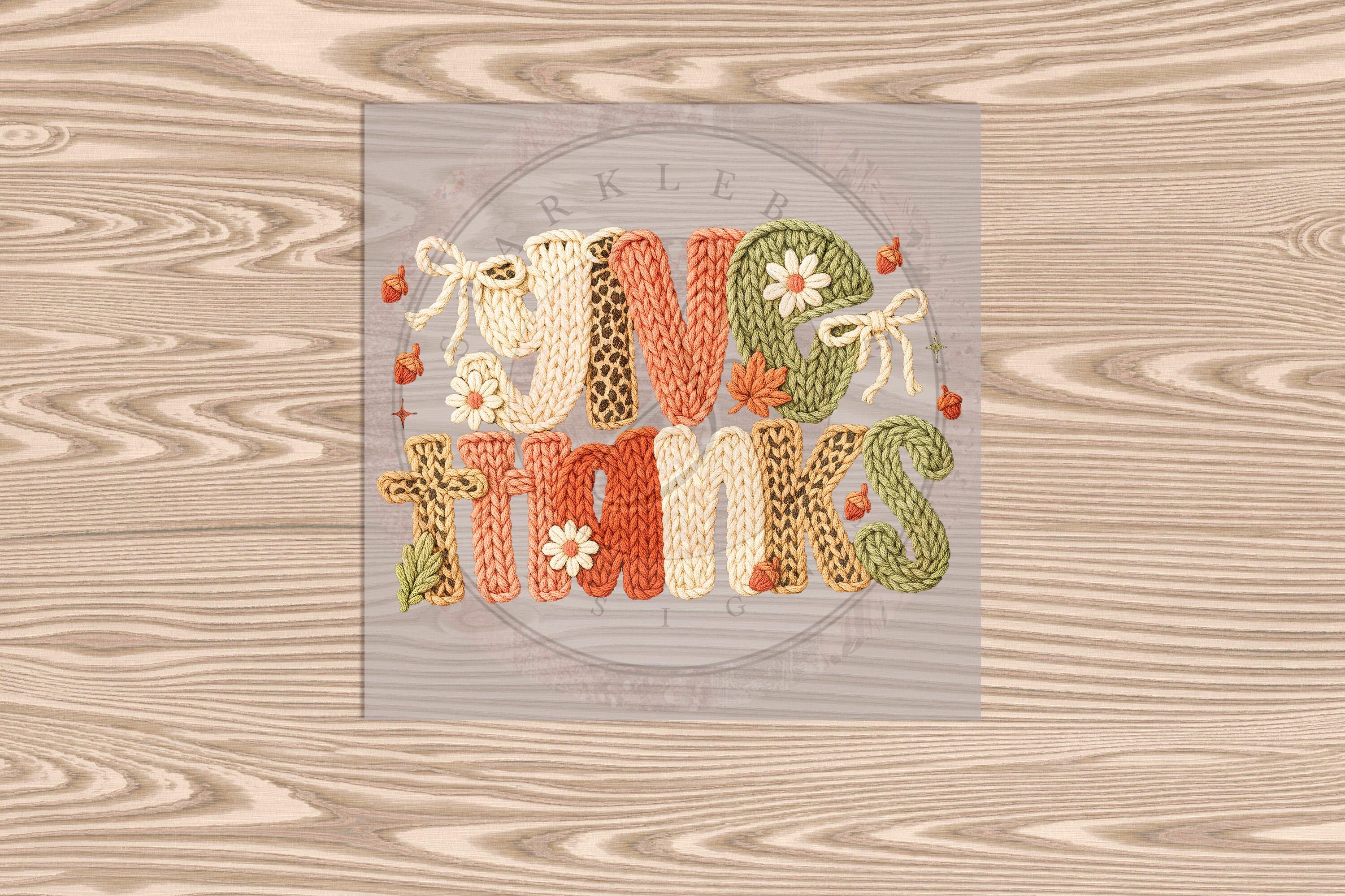 Give Thanks DTF Transfer - Faux Yarn & Embroidered Effect - Ready to Press