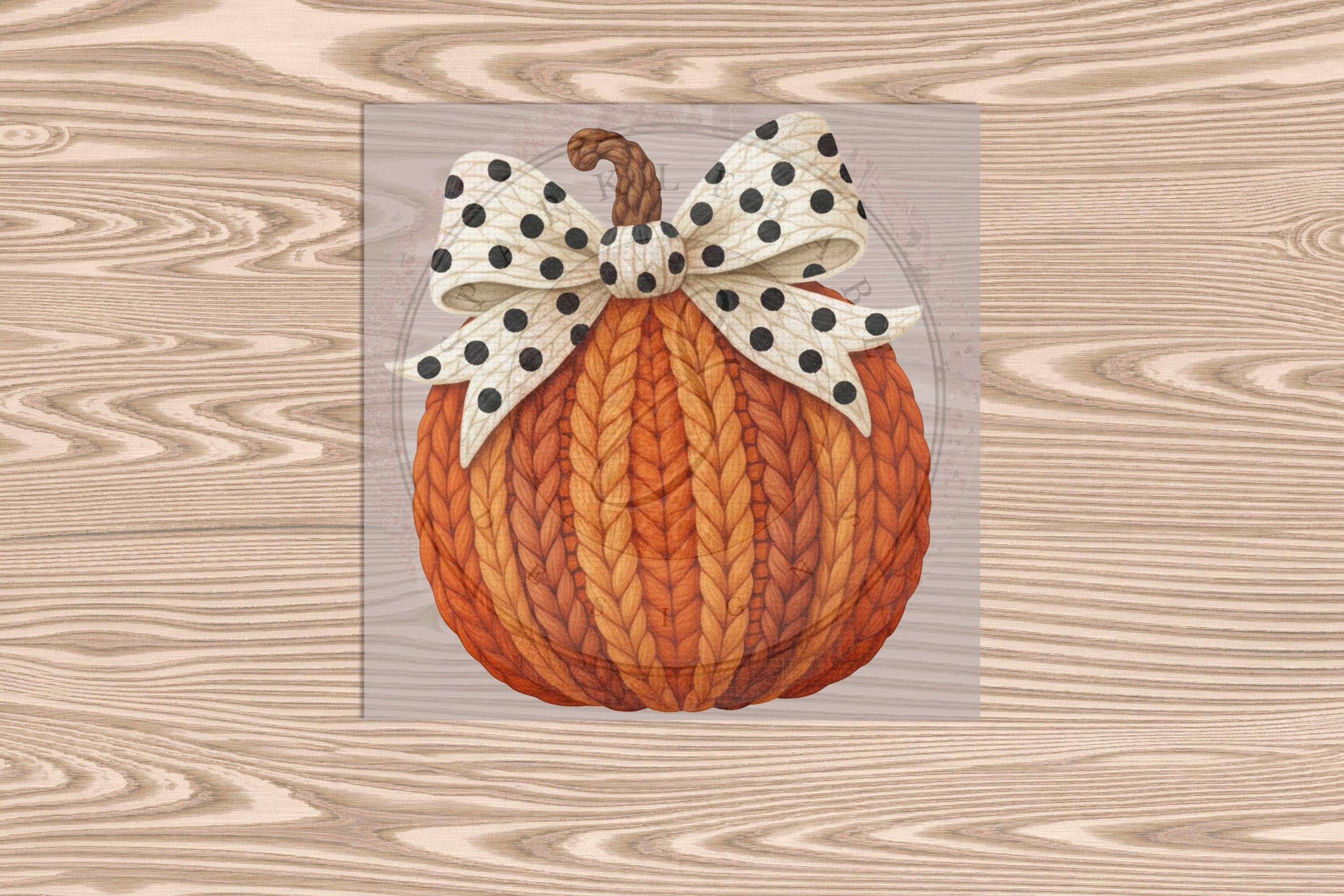 Orange Knit Pumpkin Dot Bow DTF Transfer - Faux Yarn & Embroidered Effect - Ready to Press