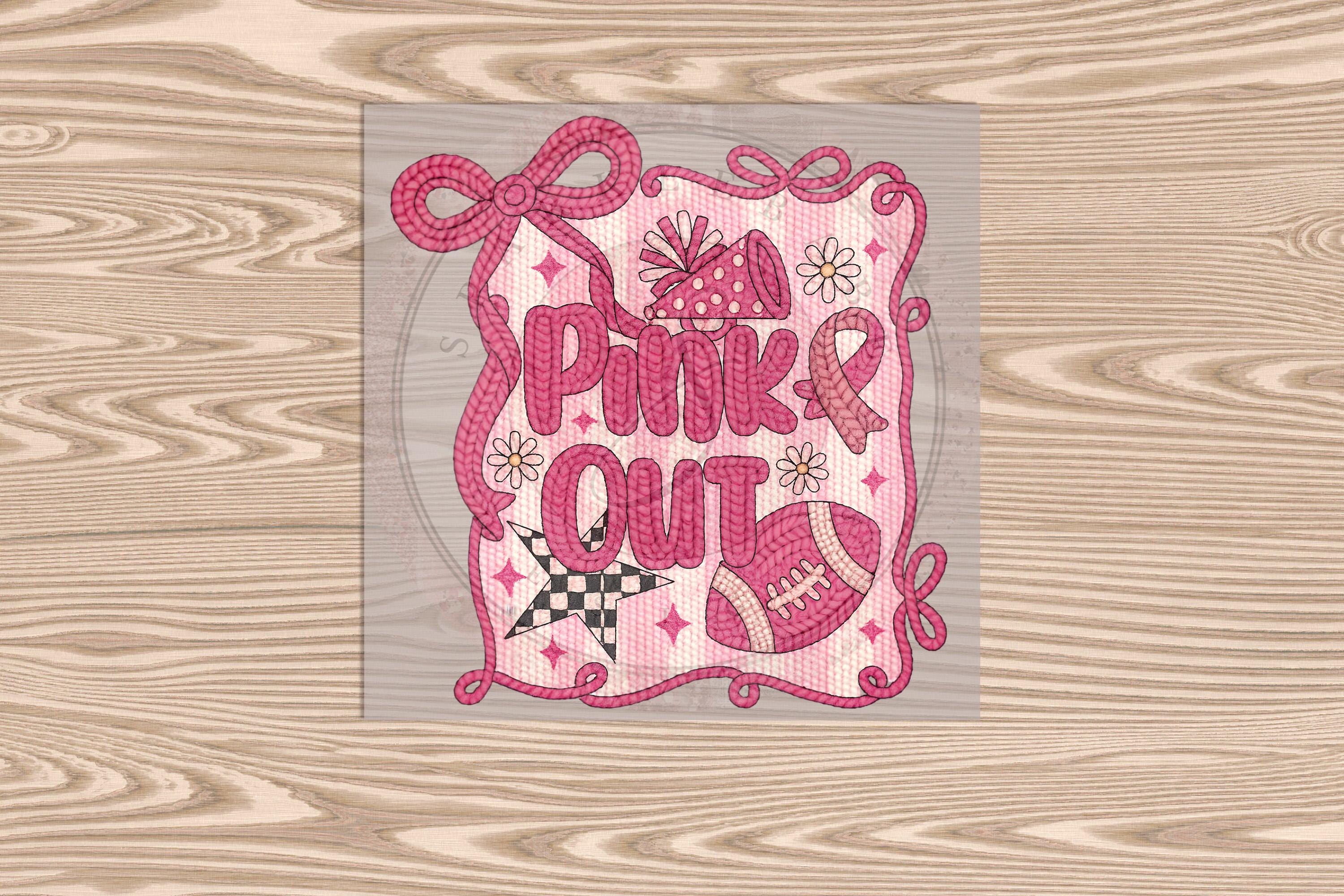 Pink Out Football - Faux Yarn & Embroidered Effect - Ready to Press
