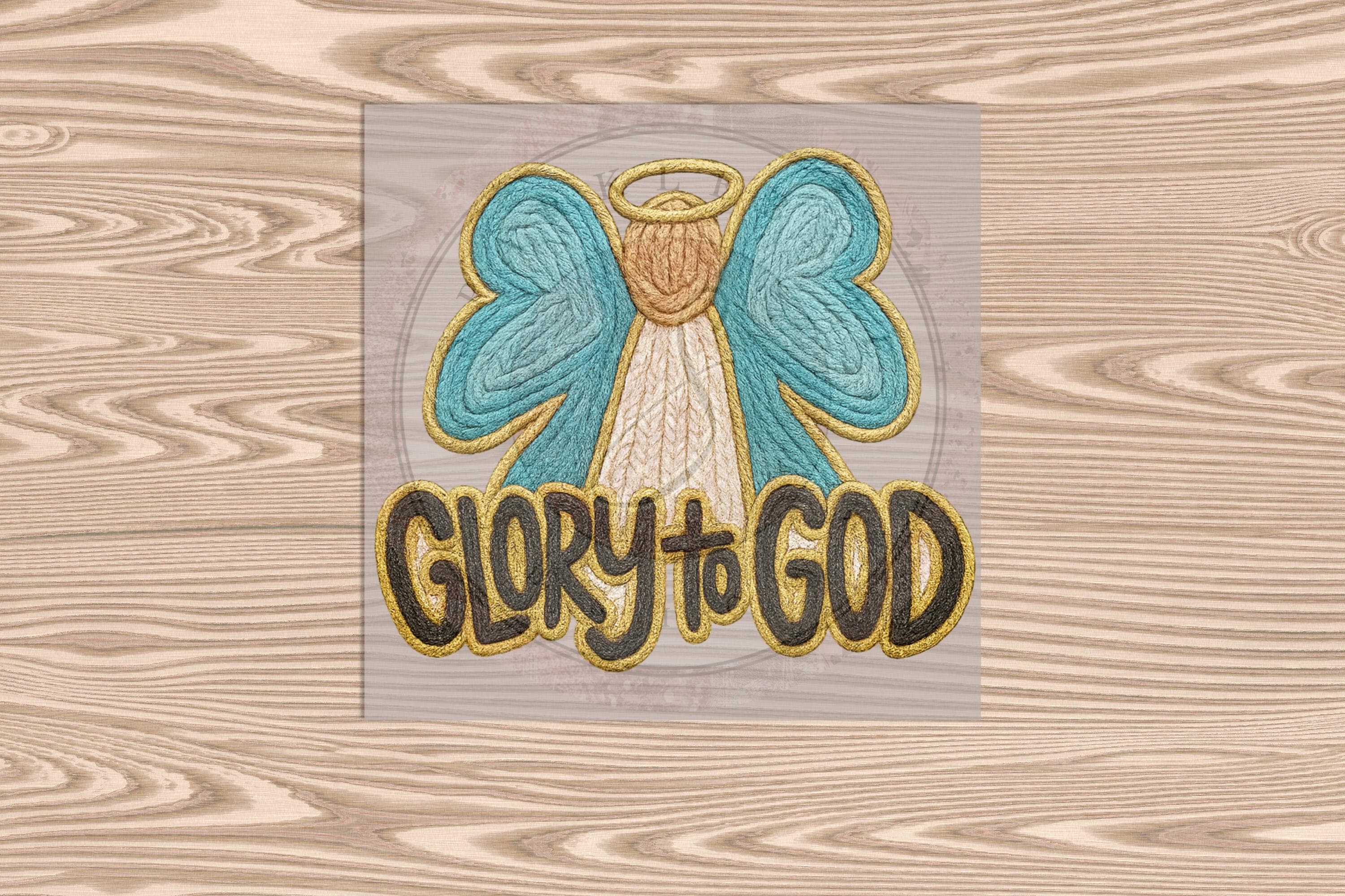 Ready to Press DTF Transfer-Glory to God Angel :Faux Yarn & Embroidered Texture Effect