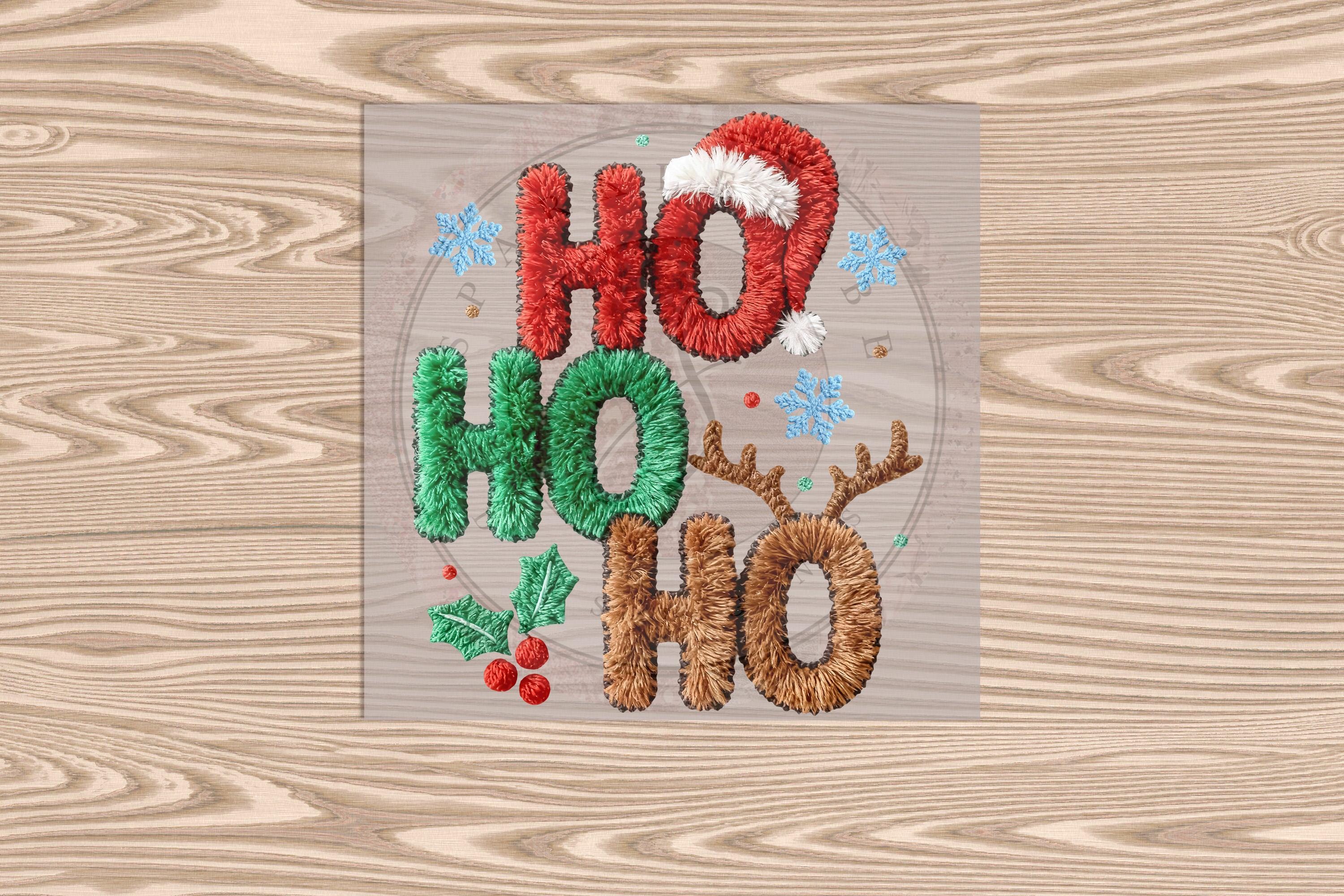 Ready to Press DTF Transfer-HoHoHo :Faux Yarn & Embroidered Texture Effect