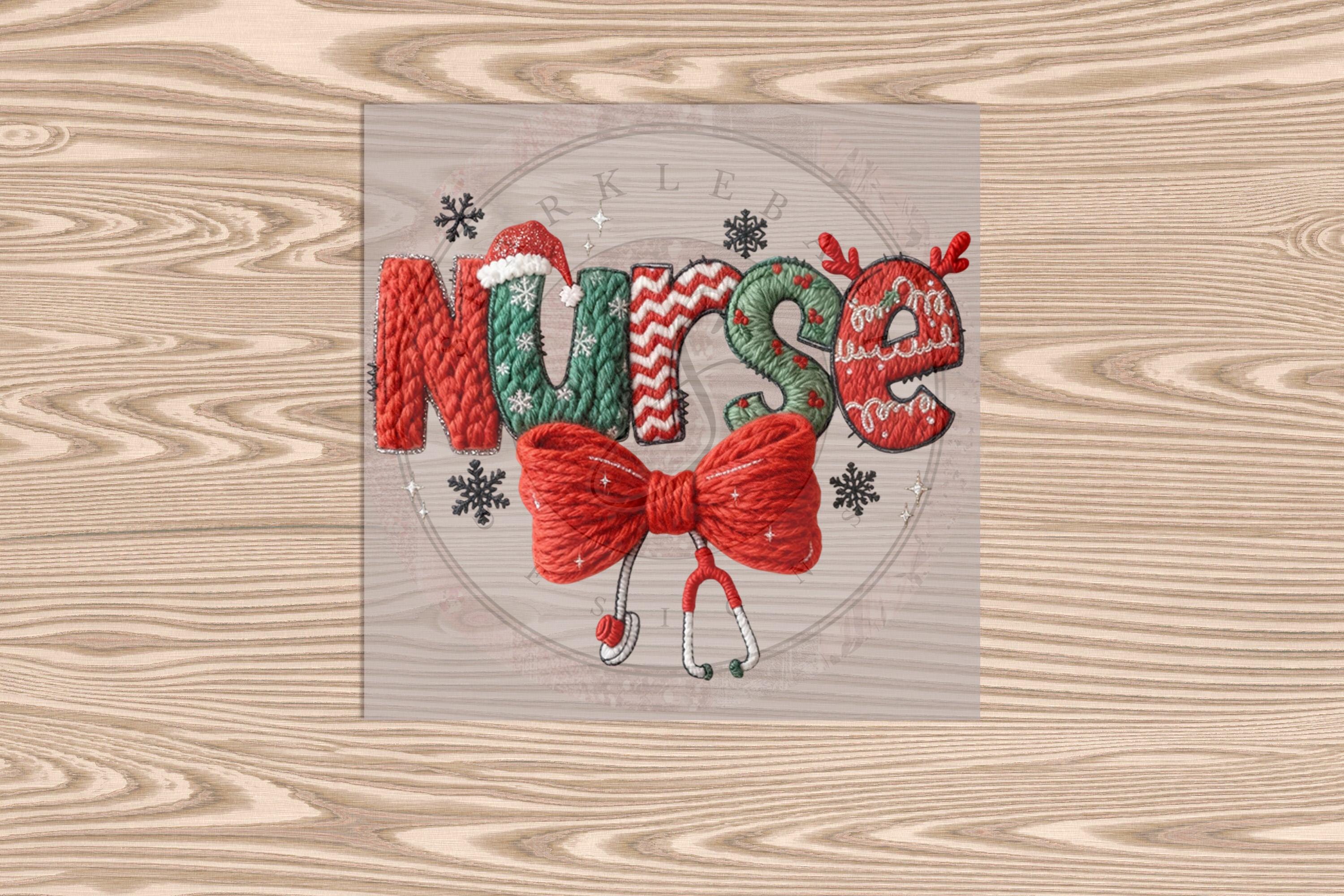 Ready to Press DTF Transfer-Nurse Bow :Faux Yarn & Embroidered Texture Effect