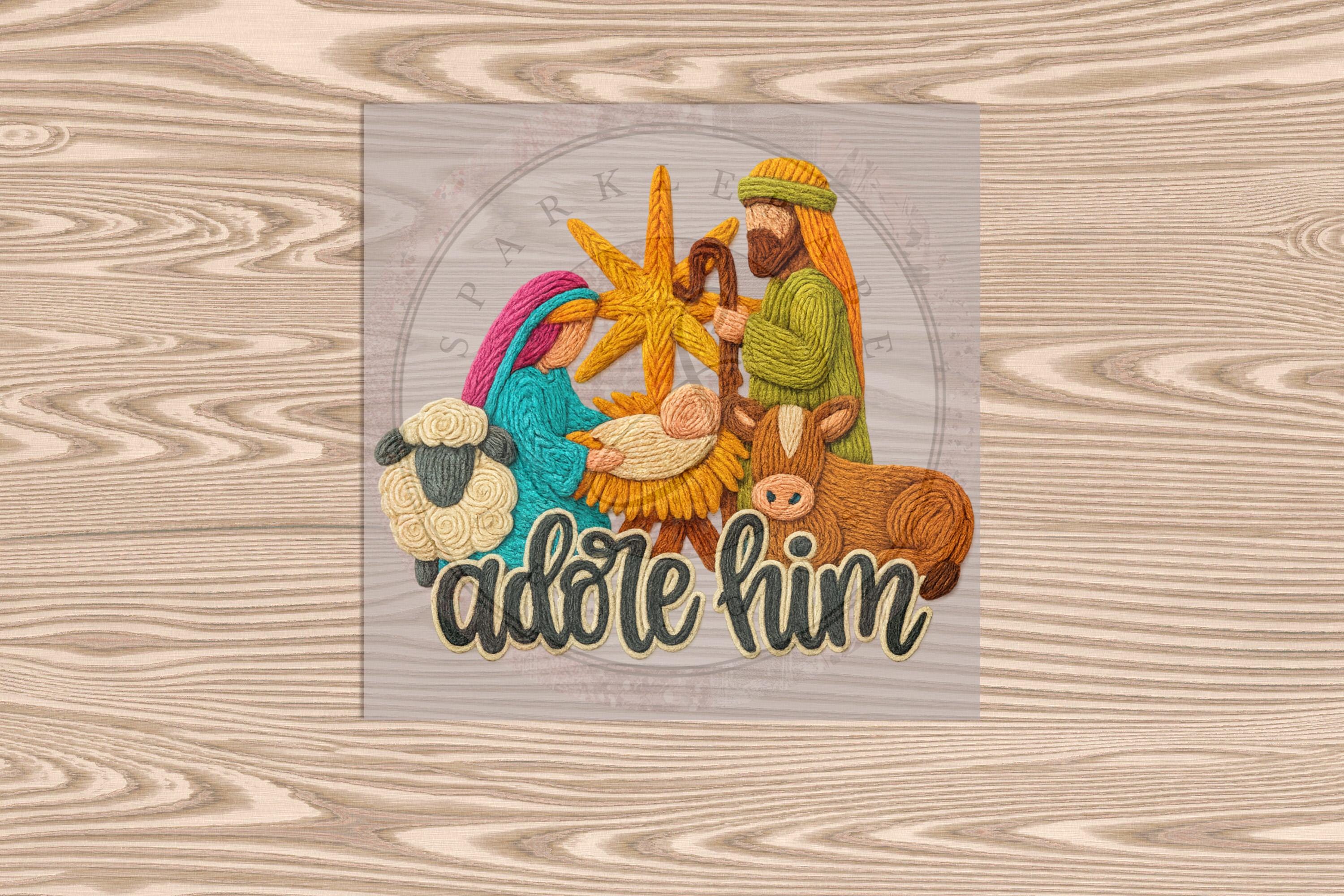 Ready to Press DTF Transfer-Adore Him :Faux Yarn & Embroidered Texture Effect