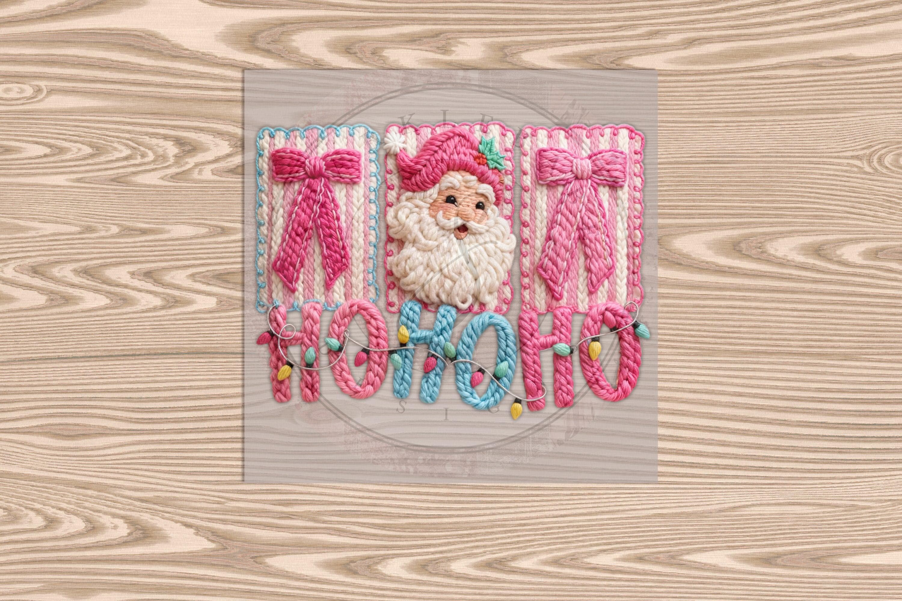 Ready to Press DTF Transfer-HoHoHo Pink Santa Coquette :Faux Yarn & Embroidered Texture Effect