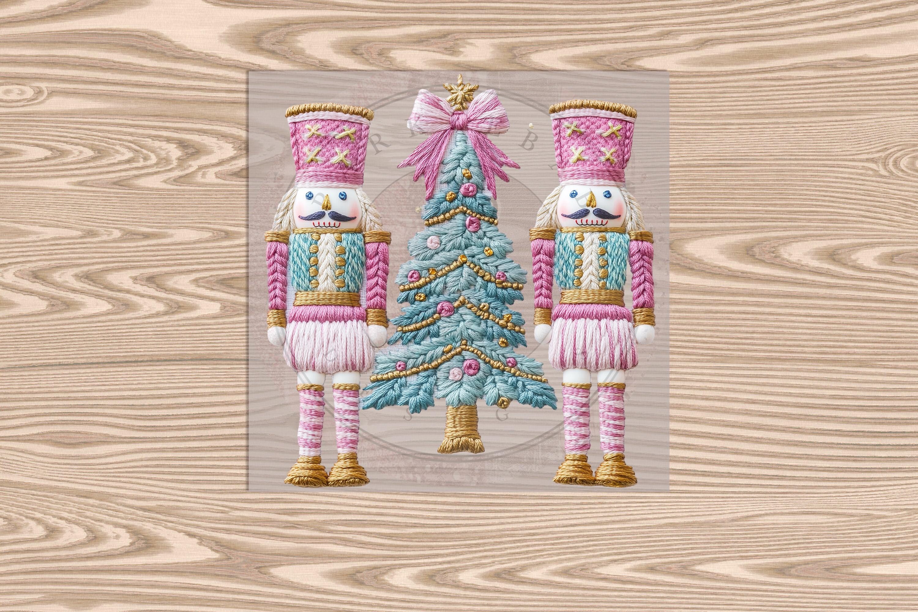 Ready to Press DTF Transfer-Christmas Nutcrackers :Faux Yarn & Embroidered Texture Effect