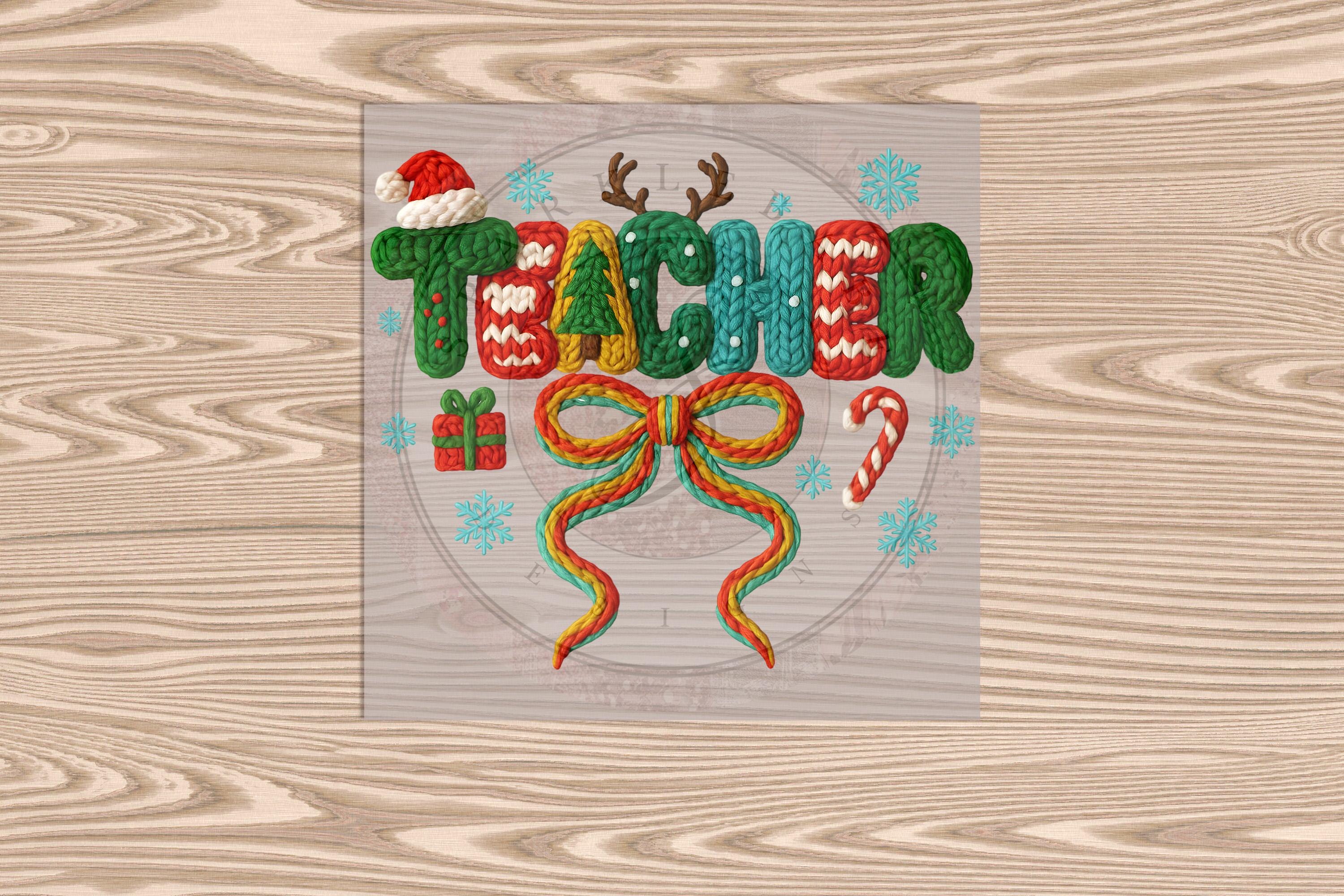 Ready to Press DTF Transfer-Teacher Bow :Faux Yarn & Embroidered Texture Effect
