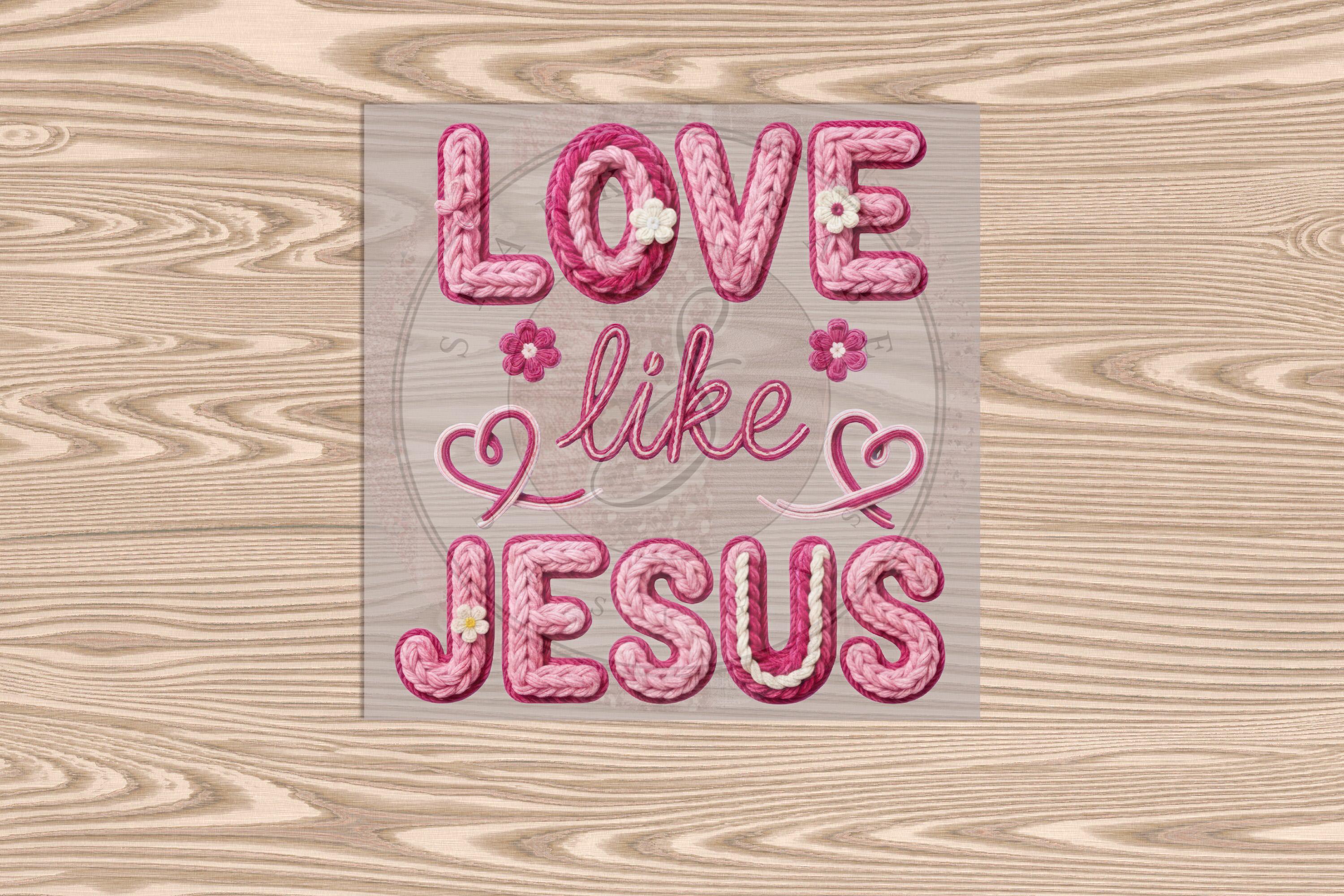 Ready to Press DTF Transfer- Love Like Jesus Faux Yarn -- heat transfer