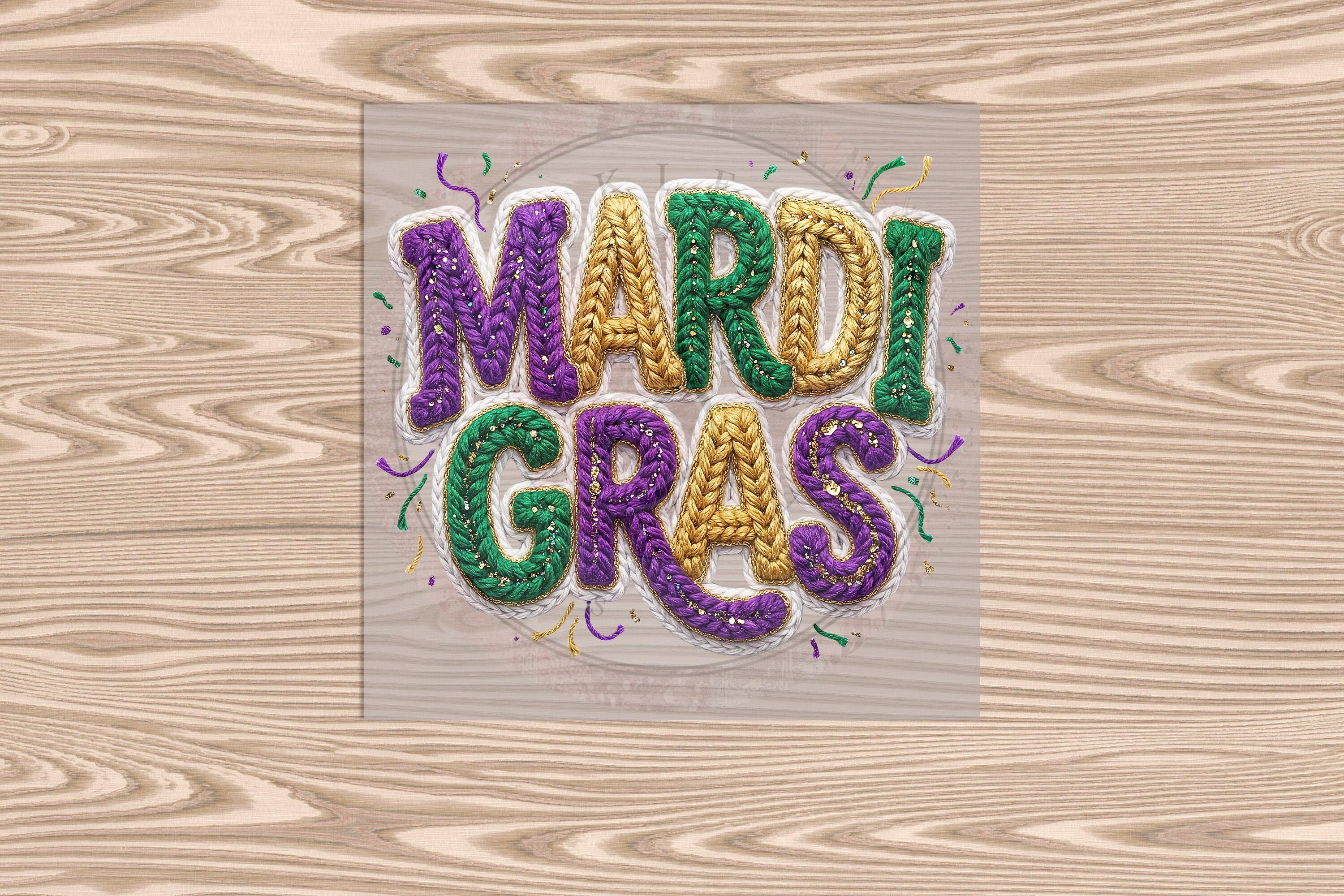 Ready to Press DTF Transfer- Mardi Gras -Faux Yarn - heat transfer