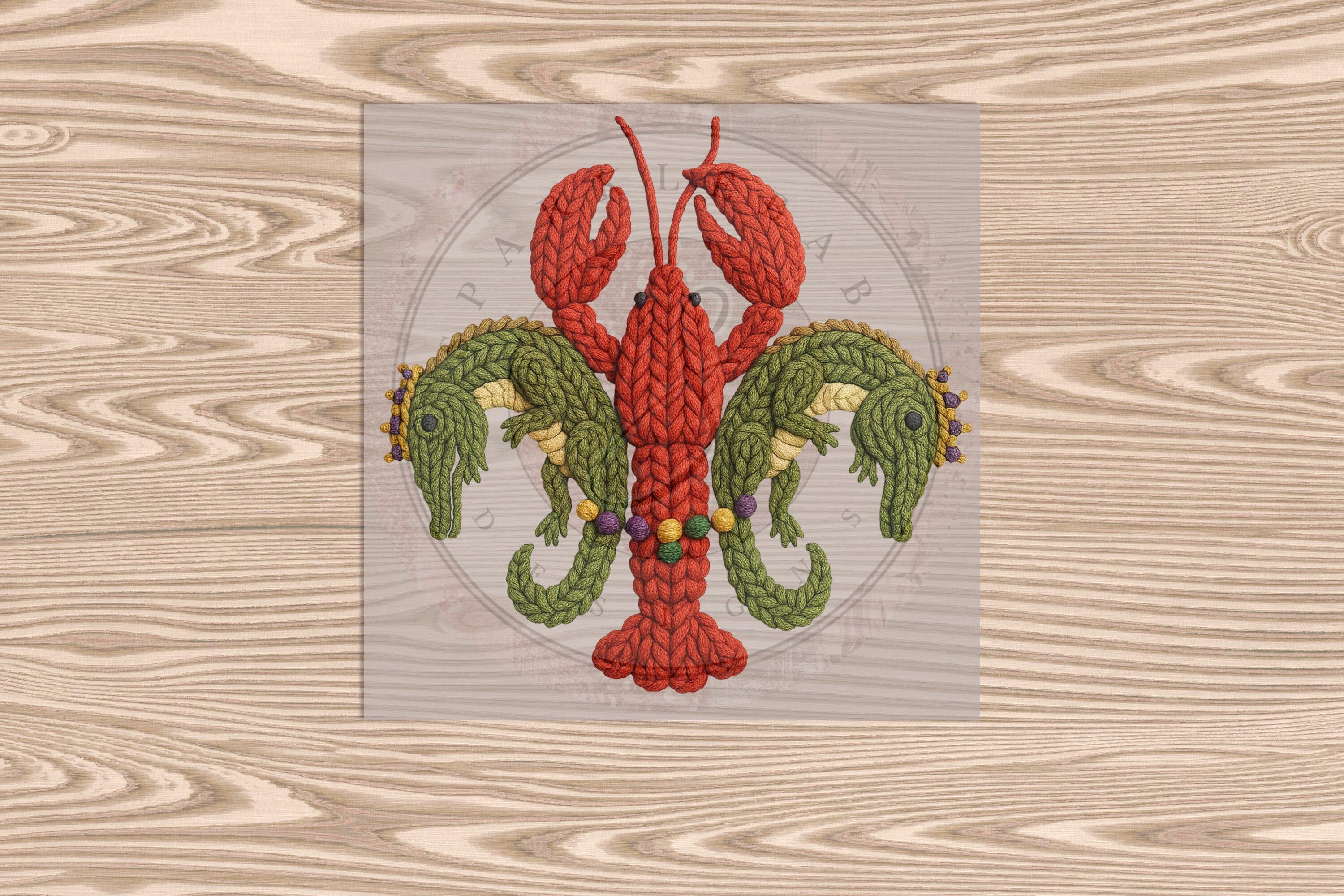 Ready to Press DTF Transfer- Crawfish Gator Fleur De Lis -Faux Yarn - heat transfer