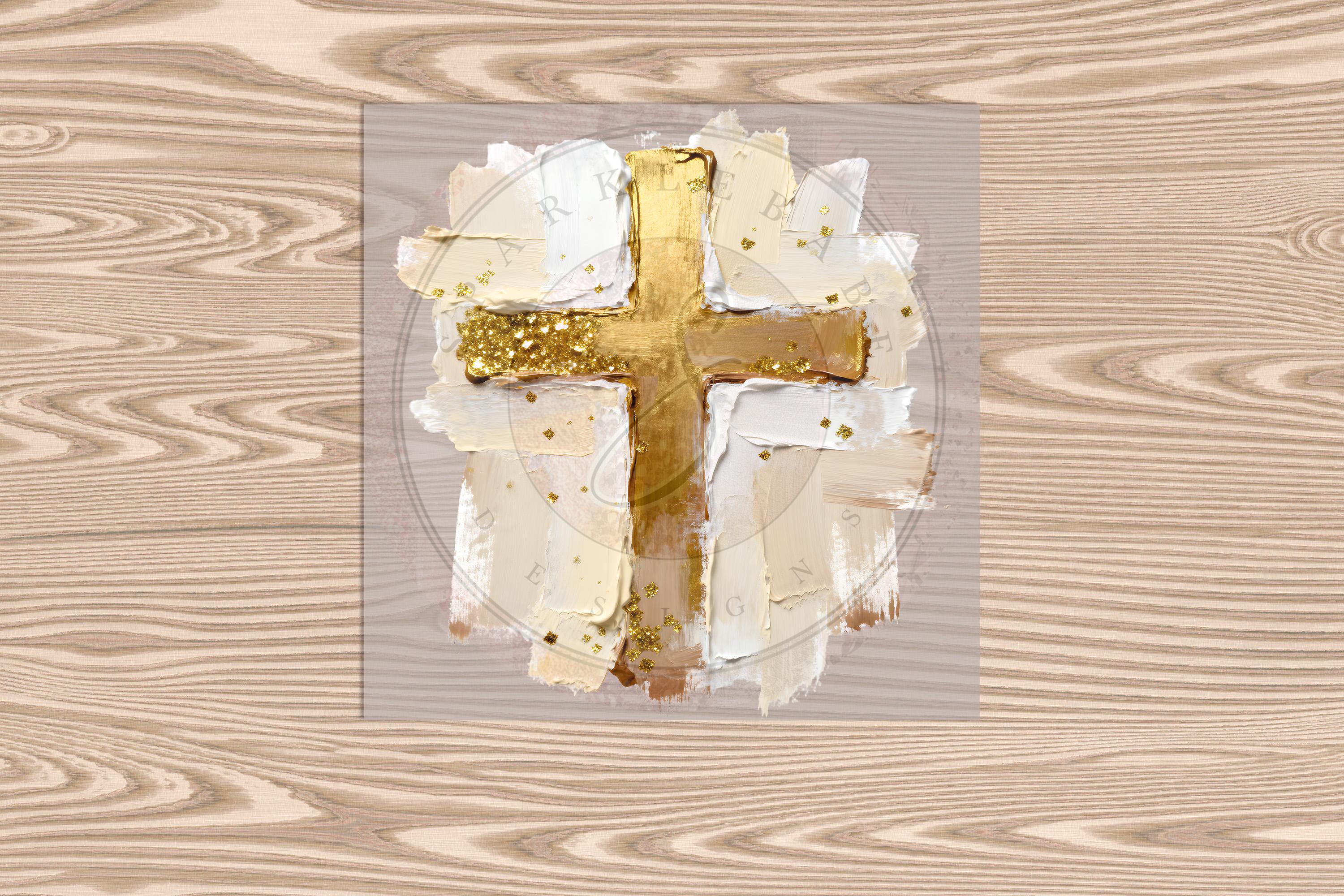 Ready to Press DTF Transfer-Gold Cross: Faux Painted Effect- heat transfer