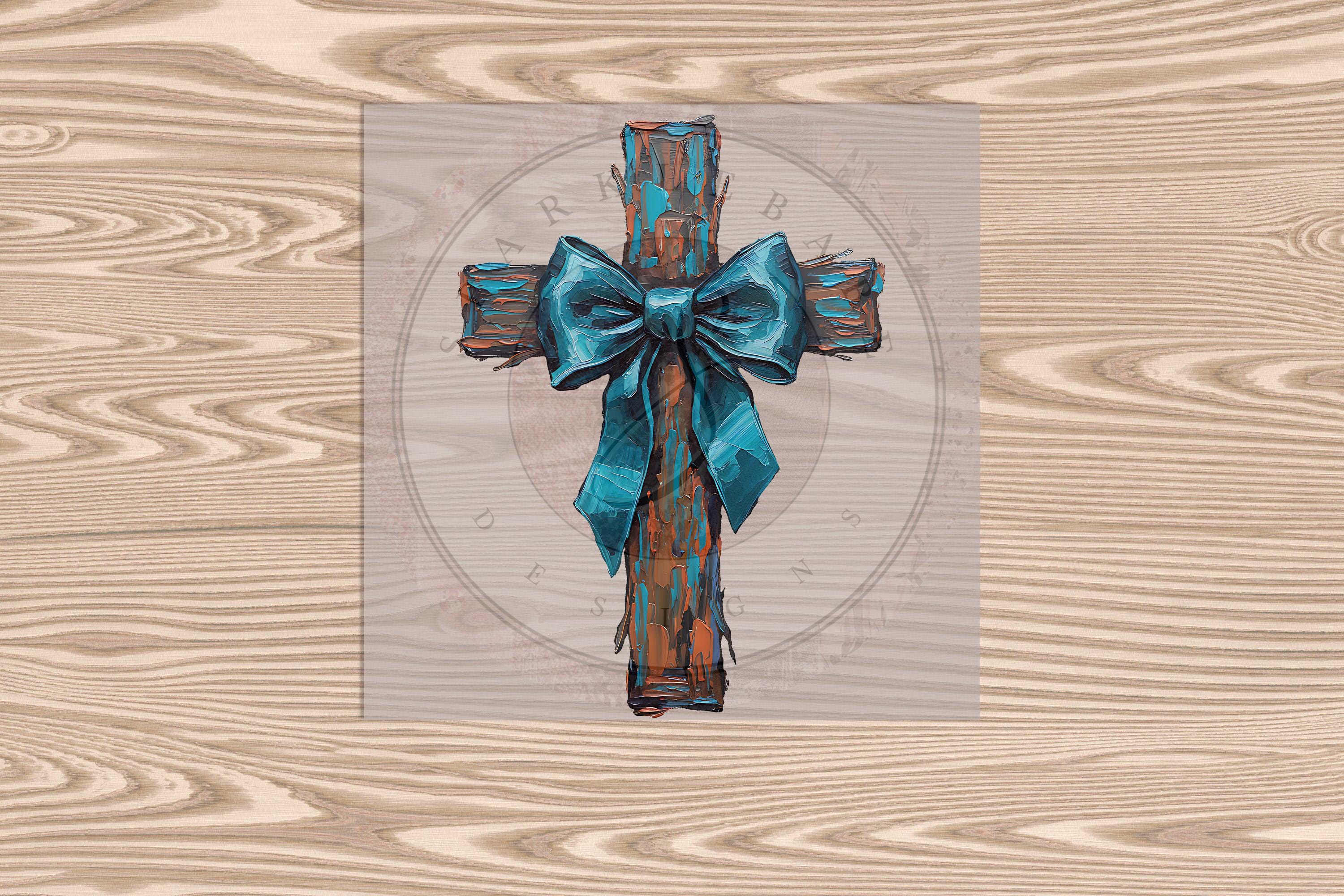Ready to Press DTF Transfer-Blue Bow Cross: Faux Painted Effect- heat transfer
